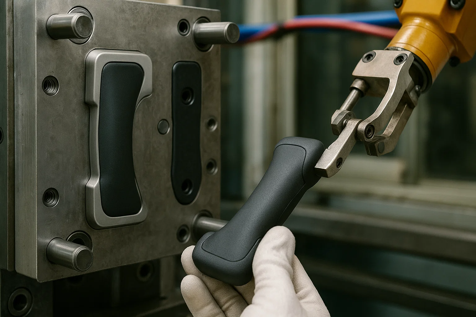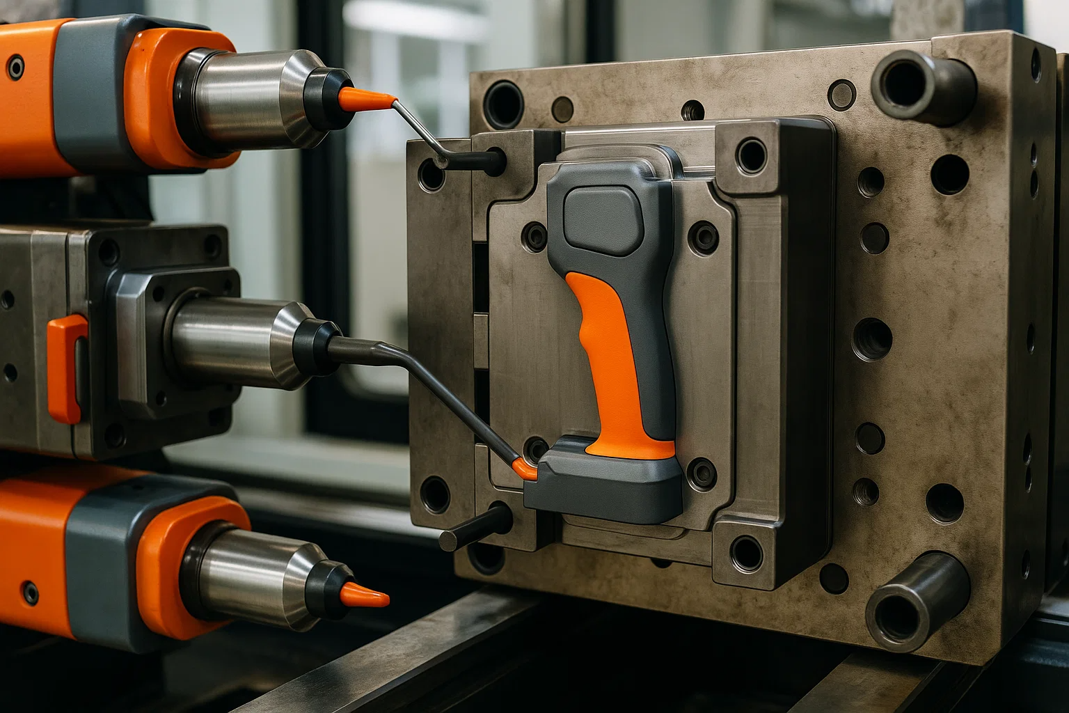 강성/촉각 구역이 다양한 부품 : 강성 코어와 소프트 터치 그립을 갖춘 전동 공구 핸들, 구조 및 인체 공학적 영역이있는 의료 기기 하우징, 단단하고 부드러운 텍스처 (예 : 대시 보드, 도어 패널)를 결합한 자동차 내부 구성 요소.