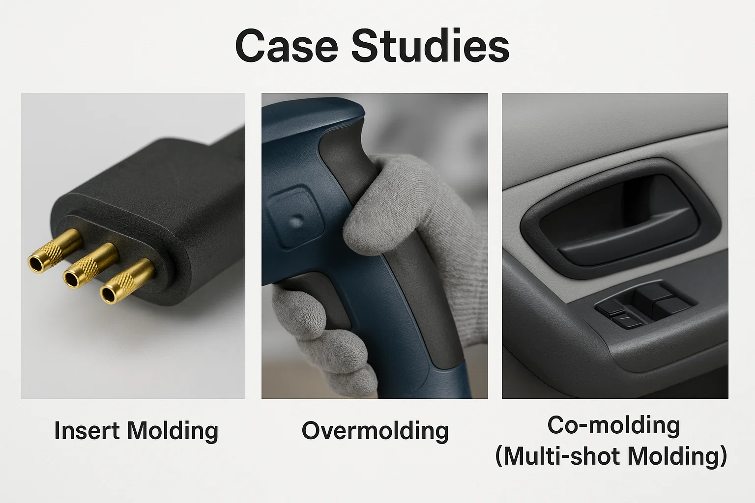 각 성형 공정의 실제 적용 및 이점을 설명하기 위해 혁신적이고 효율적인 제품을 만들기 위해 인서트 몰딩, 오버 몰딩 및 공동 홀딩이 성공적으로 사용 된 실제 예제를 살펴 보겠습니다.