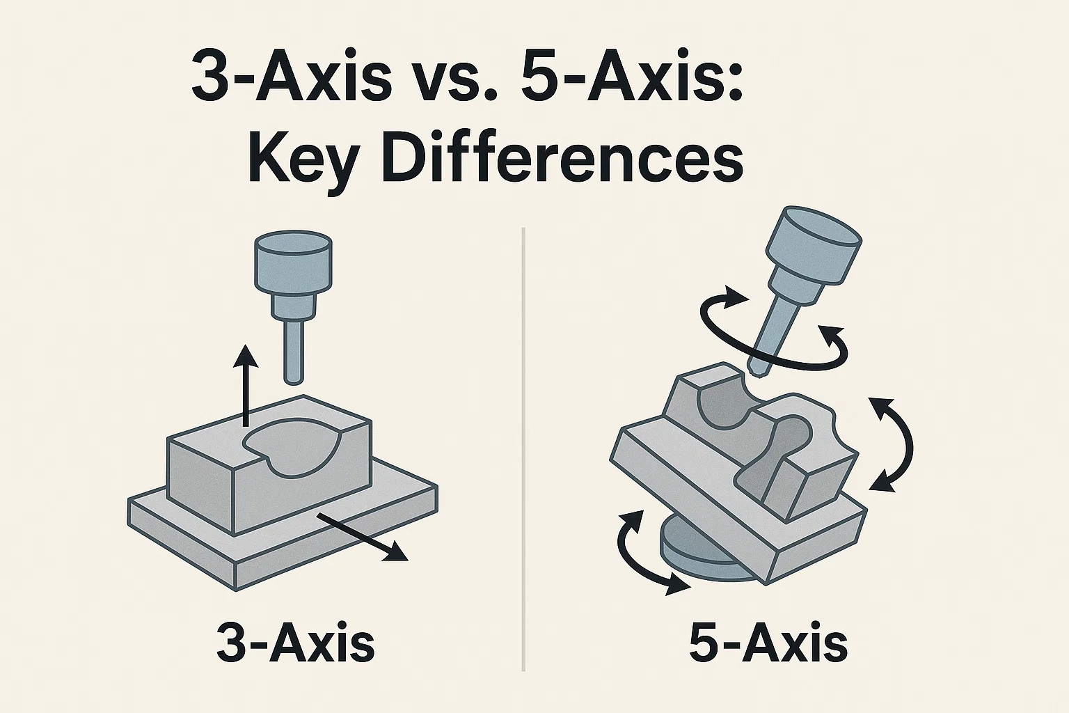 3 축과 5 축 CNC 가공을 선택하는 것은 부품 복잡성, 생산 효율, 비용, 궁극적으로 프로젝트의 성공에 영향을 미치는 중요한 결정입니다. 둘 다 강력한 제조 방법이지만 근본적인 차이는 최적의 사용 사례를 지시합니다.