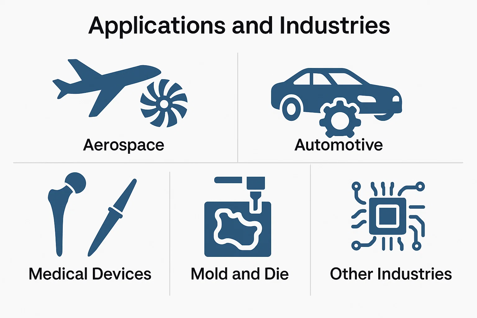 고급 기능을 고려할 때 5 축 CNC 가공은 최고 수준의 정밀도 및 기하학적 복잡성을 요구하는 산업에서 필수 불가결합니다. 응용 프로그램은 광범위한 범위에 걸쳐 있습니다.