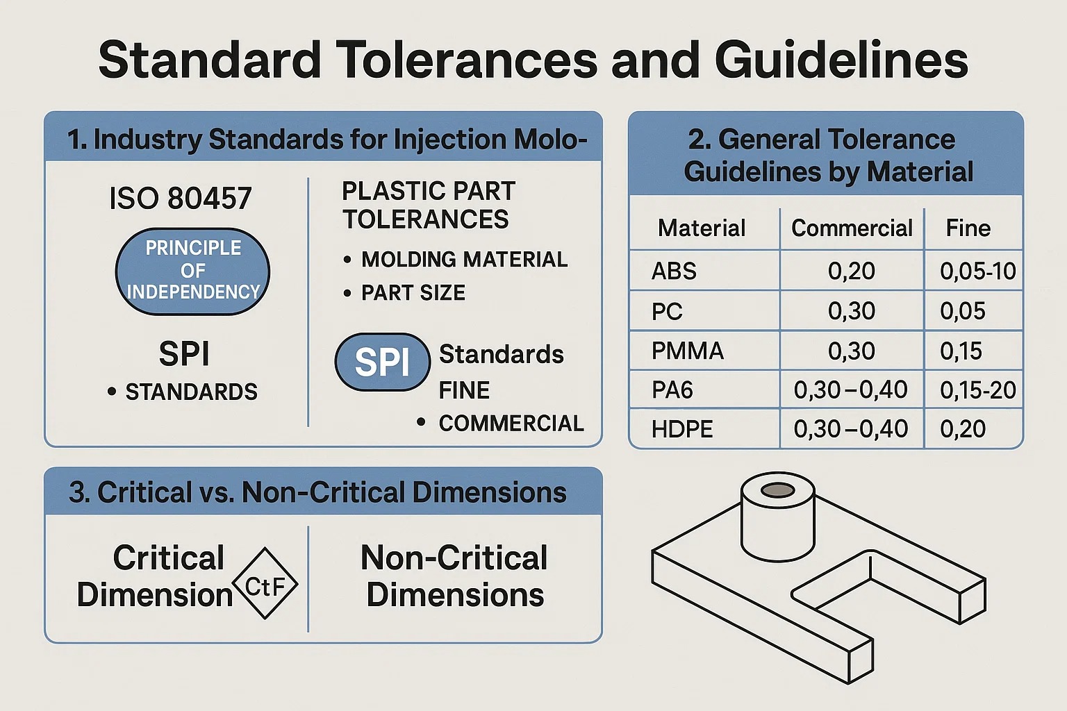 "완벽한" 치수는 불가능하므로 업계에서는 허용 가능한 크기를 정의하기 위해 확립된 표준에 의존합니다. 이러한 표준은 엔지니어와 성형업체가 금형을 절단하기 전에 품질 기대치에 동의할 수 있는 공통 언어를 제공합니다.